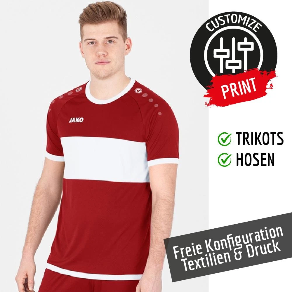 JAKO Trikotset frei konfigurierbar – Wähle die Wunschfarbvarianten und Wunschgrößen in den benötigten Mengen. Konfiguriere dir zudem den für dich passenden Textildruck von z.B. Vereinsname, Vereinslogo und Nummern dazu. Schnell und einfach zu deiner Wunschkonfiguration. Es greift immer der für dich günstigste Preis unser hinterlegten Staffelpreise. Noch nie war Individualisierung für dich, dein Team, dein Verein oder dein Unternehmen so einfach!