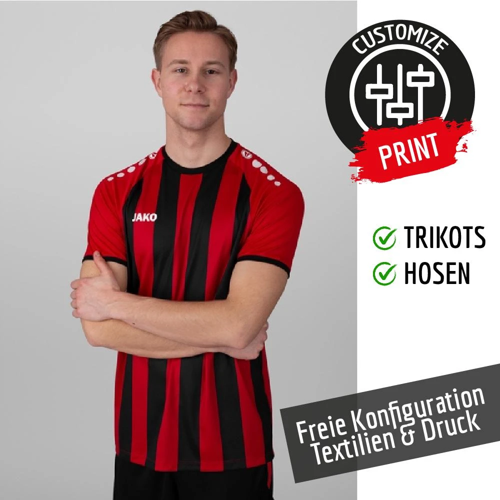 JAKO Trikotset frei konfigurierbar – Wähle die Wunschfarbvarianten und Wunschgrößen in den benötigten Mengen. Konfiguriere dir zudem den für dich passenden Textildruck von z.B. Vereinsname, Vereinslogo und Nummern dazu. Schnell und einfach zu deiner Wunschkonfiguration. Es greift immer der für dich günstigste Preis unser hinterlegten Staffelpreise. Noch nie war Individualisierung für dich, dein Team, dein Verein oder dein Unternehmen so einfach!